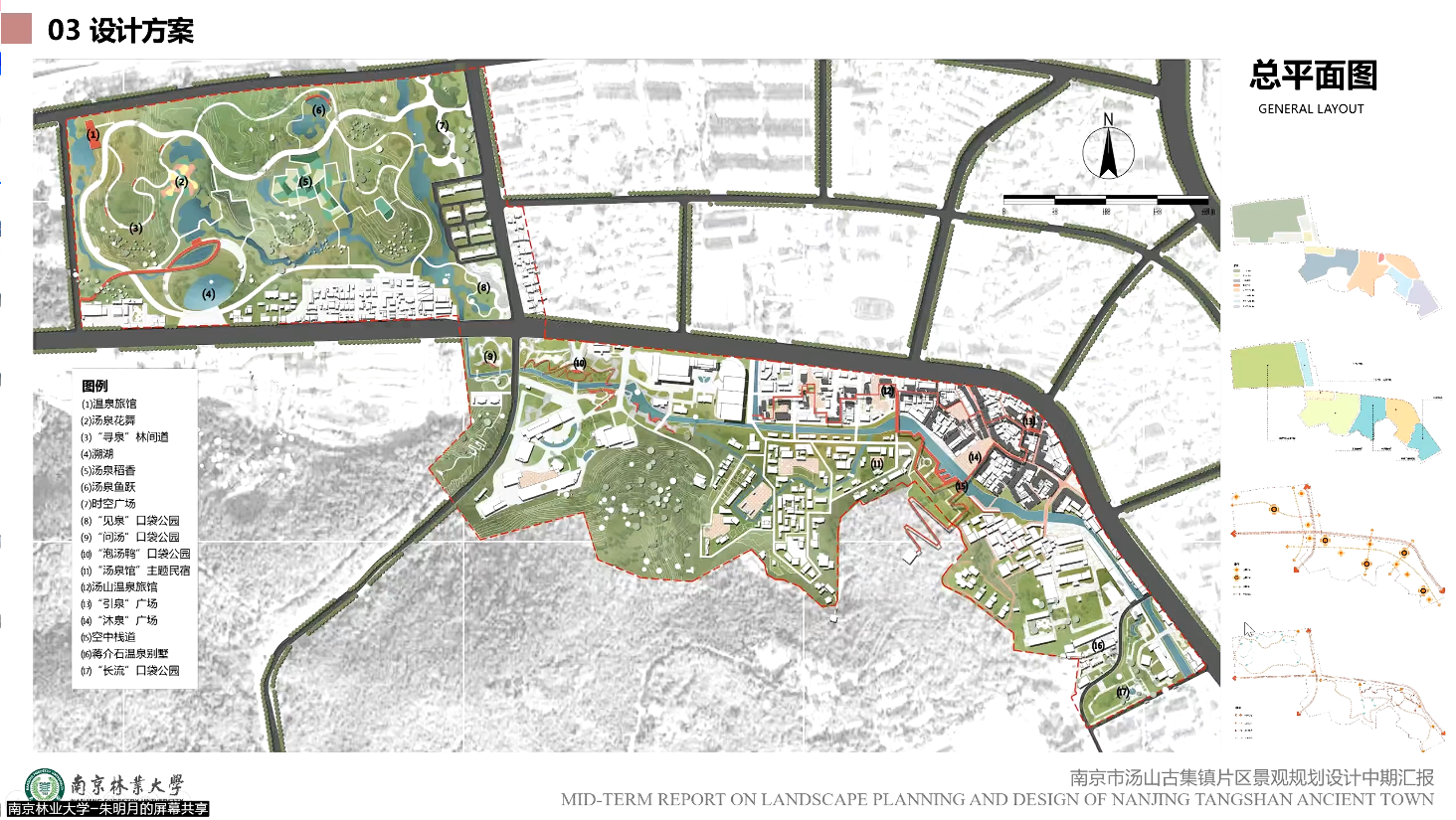 题目:栖霞叠境、涸脉复涌——基于城市双修理念下的汤山古集镇片区景观规划设计