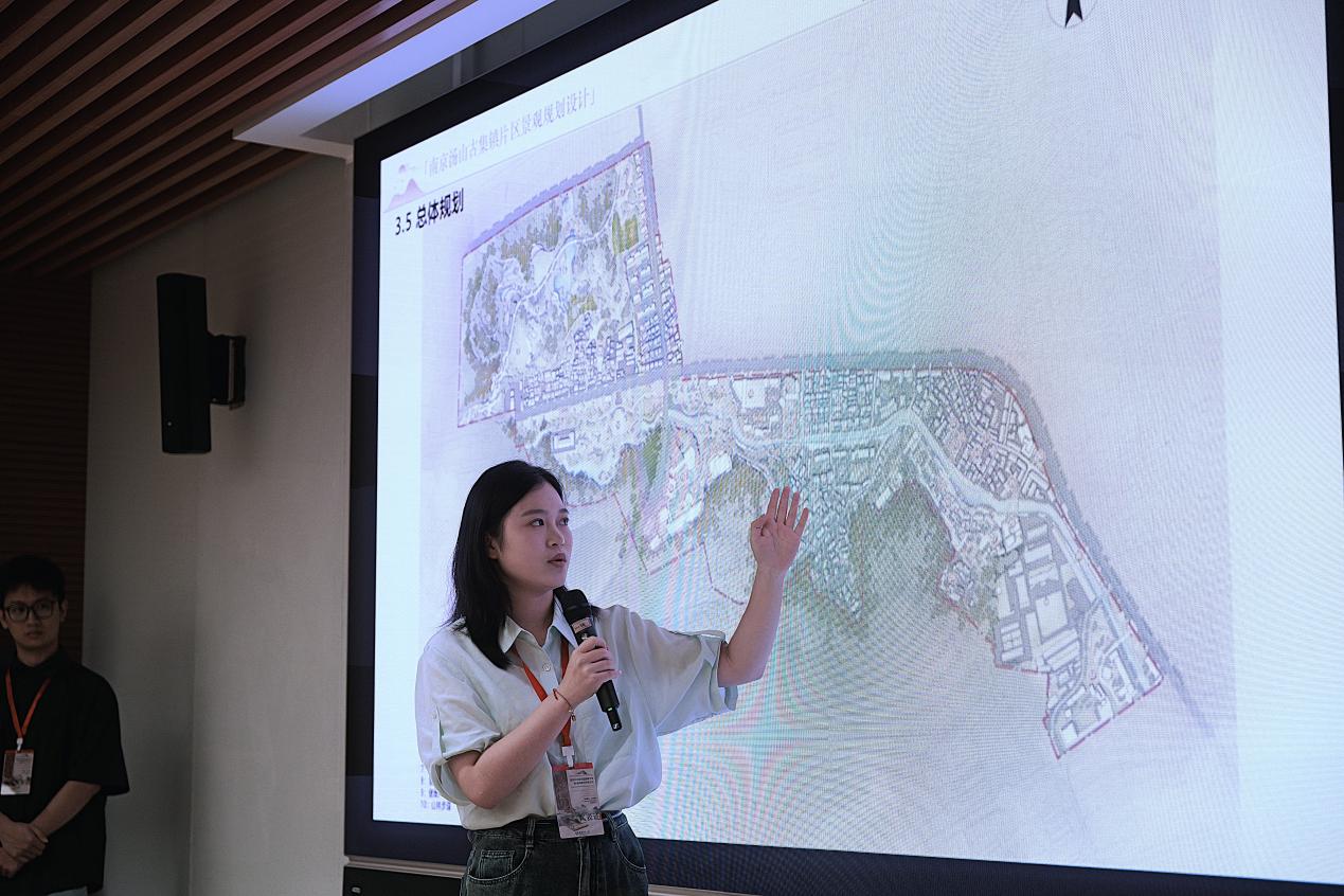 开幕式后,各校师生代表分为四组,分别在组长胡一可教授、潘剑彬副教授、许大为教授、刘骏副教授的带领下,开展设计成果终期答辩汇报。答辩专家组由各校指导老师、苏交科集团、汤山文旅集团、南京市园林院、汤山旅游区管委会、江苏省规划设计集团的专家组成。汇报结束后,师生们参观了毕业设计成果展,交流设计心得,分享设计理念,与设计成果合影留念。